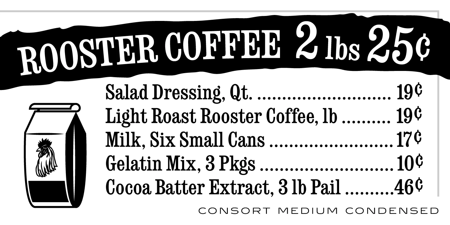 | Consort Family Styles included • Condensed Light • Condensed Medium • Condensed Bold • Condensed Extra Bold $95.99 |