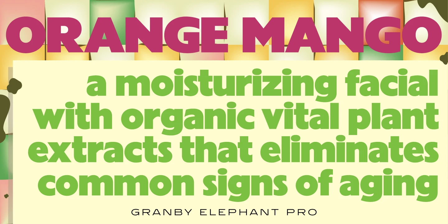 The Granby family of typefaces was first produced in 1930 by Stephenson Blake in Sheffield, UK. The original family included Granby Elephant as the heaviest weight. International TypeFounders, Inc. acquired exclusive licensing rights to the SB Collection in 1991, and Granby Elephant was developed in 2011 by Steve Jackaman (ITF) and Ashley Muir for the Red Rooster Collection. Granby Elephant is bold, sturdy, and powerful at display and subhead size.